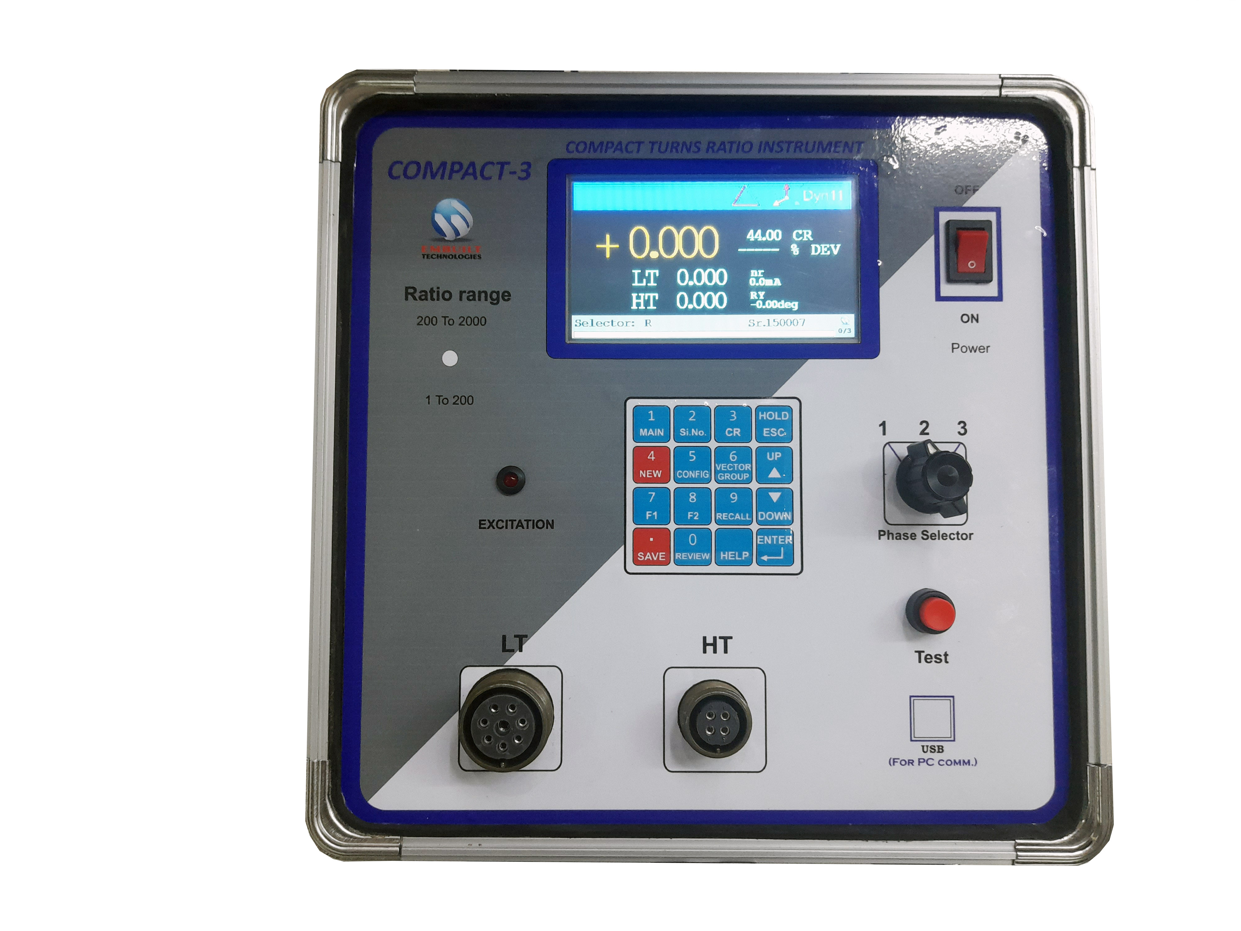 Three phase portable turns ratio instrument with 18 vector groups.